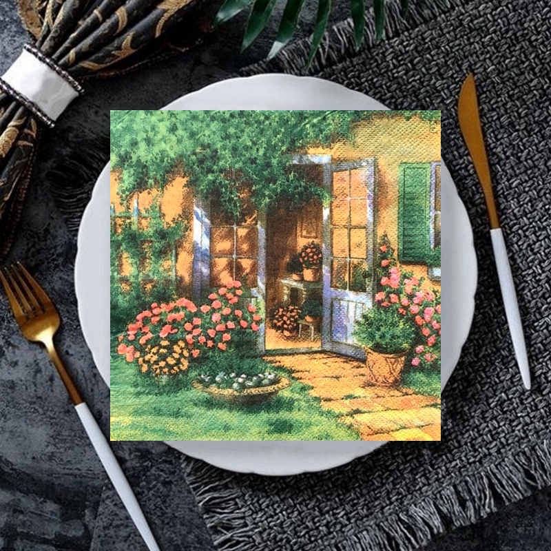 20 stk/pakke blomster vintage retro landlig bord decoupage papirservietter blomsterserviet papirlommetørklæde til festdekorationer